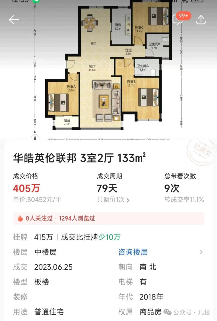 我又翻了几套同户型往年的成交价格,大家可以看一下现在成交单价比高点跌了一万多……