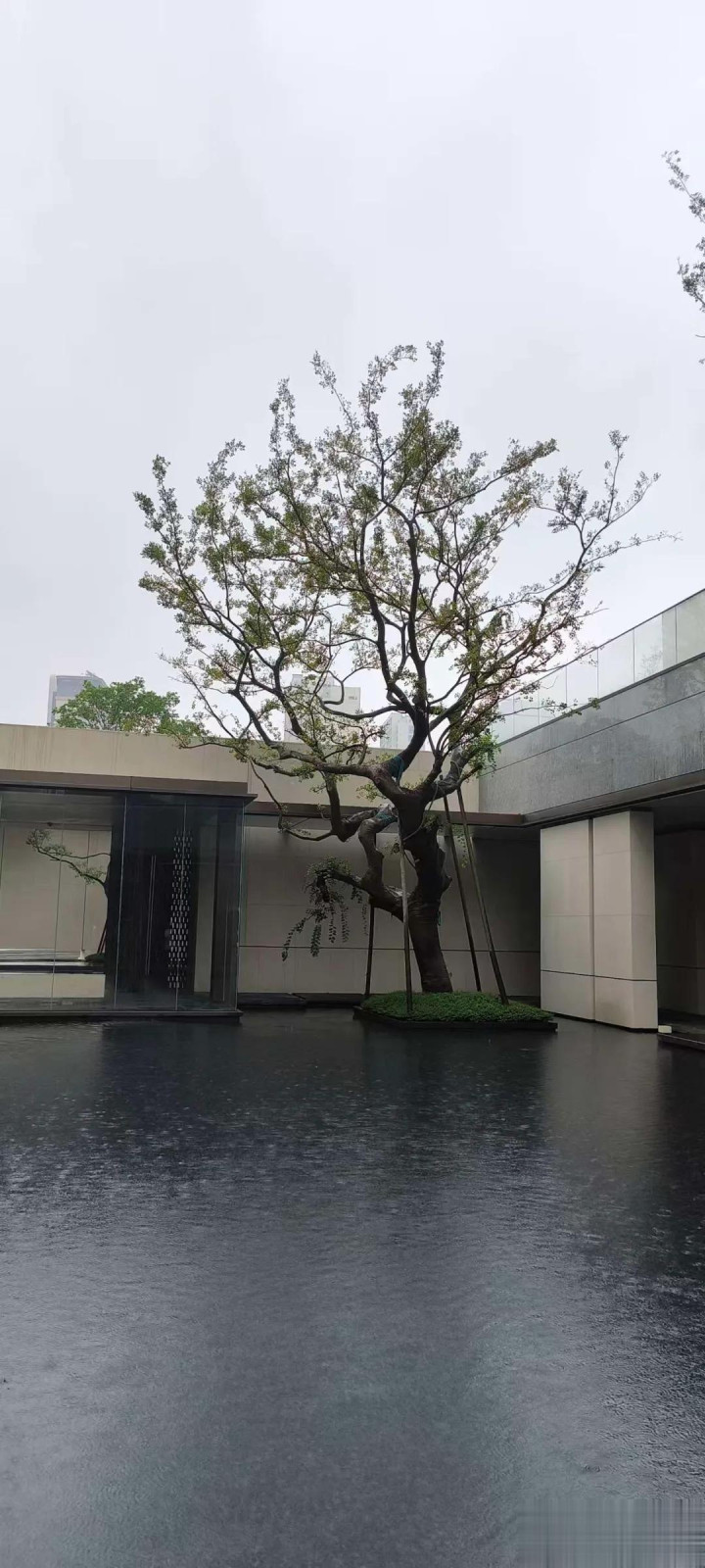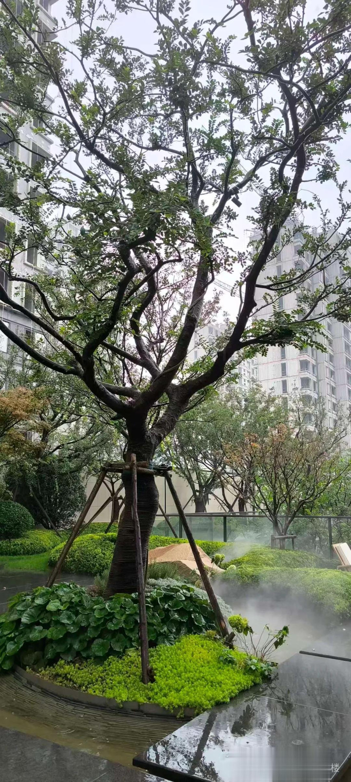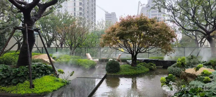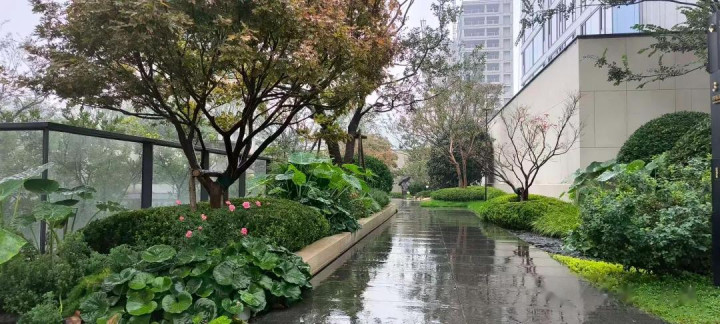 上午去壹号院参观338大平层,雨中的社区景观的确更出效果,拍了几张,分享一下。