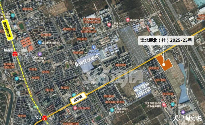 该地土地编号为津北辰北(挂)2025-25号,位于北辰区辰庆路与北辰道交口东南侧。
