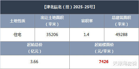 挂牌起始价为3.66亿元,折合起始楼面价为7426元/平米。